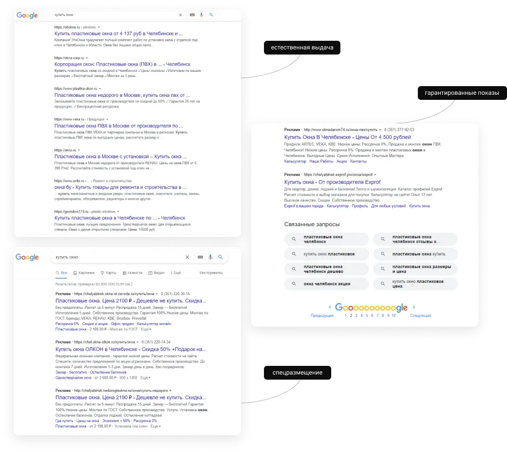 • Поисковой выдачи в тематике;