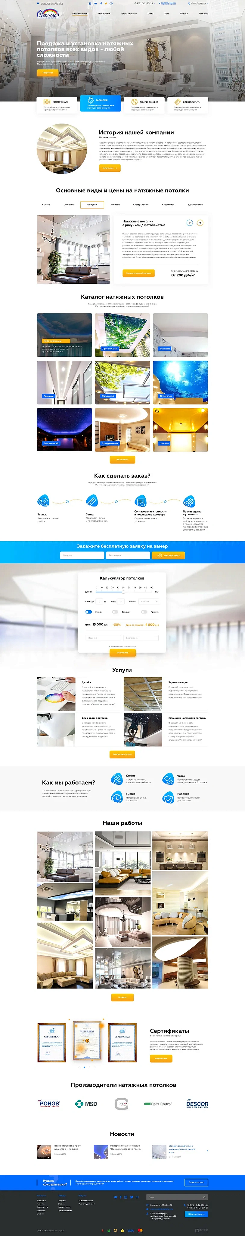 Мы разработали новый дизайн и перенесли контент со старого сайта. Фишкой является индивидуальный калькулятор, который позволяет пользователю рассчитать примерную стоимость натяжного потолка, а также 3D-примерочная потолков, благодаря которой можно представить как будет выглядеть выбранный дизайн.
