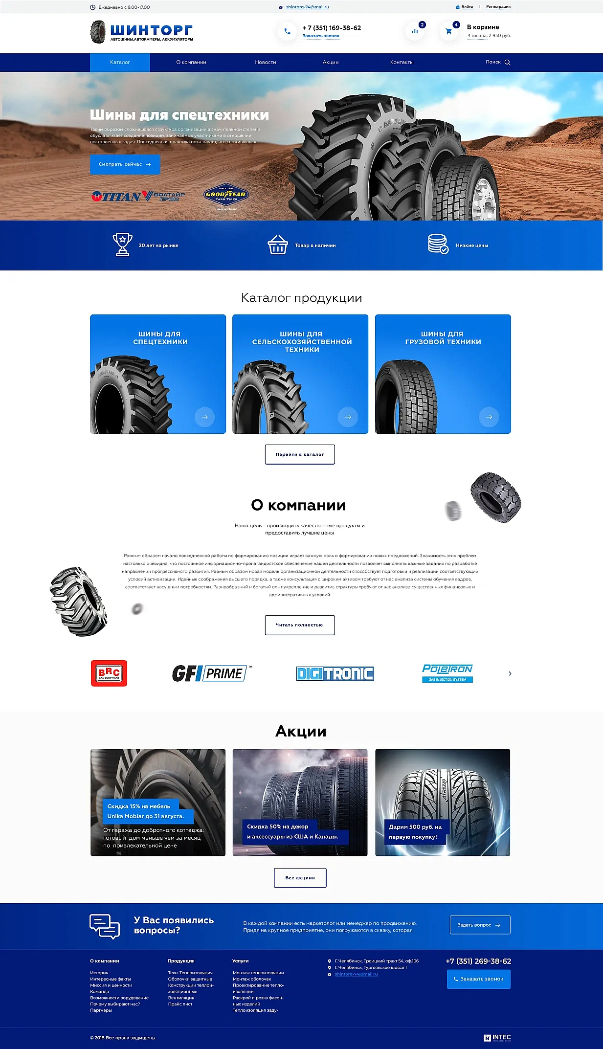 Для реализации каталога шин для спецтехники на редакции 1С-Битрикс "Старт" был использован модуль INTEC Старт SHOP, который позволяет получить полноценный интернет-магазин.
