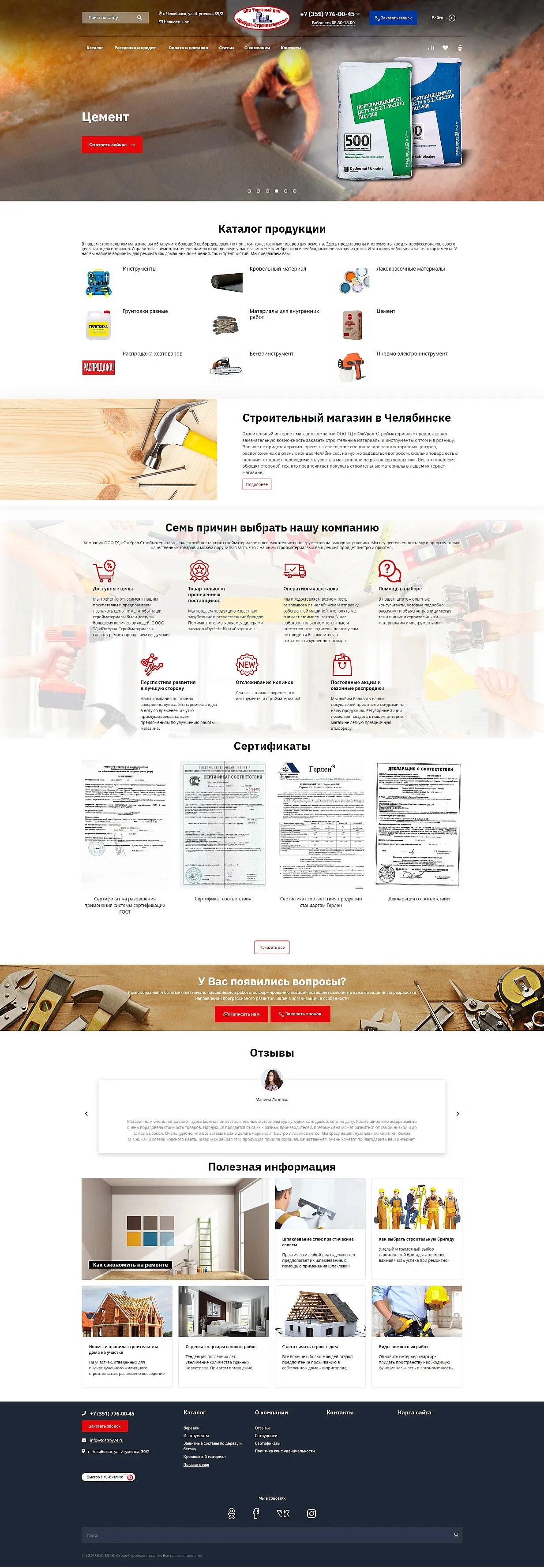 Разработка интернет-магазина по продаже строительных материалов ТД «ЮжУрал-Стройматериалы»
