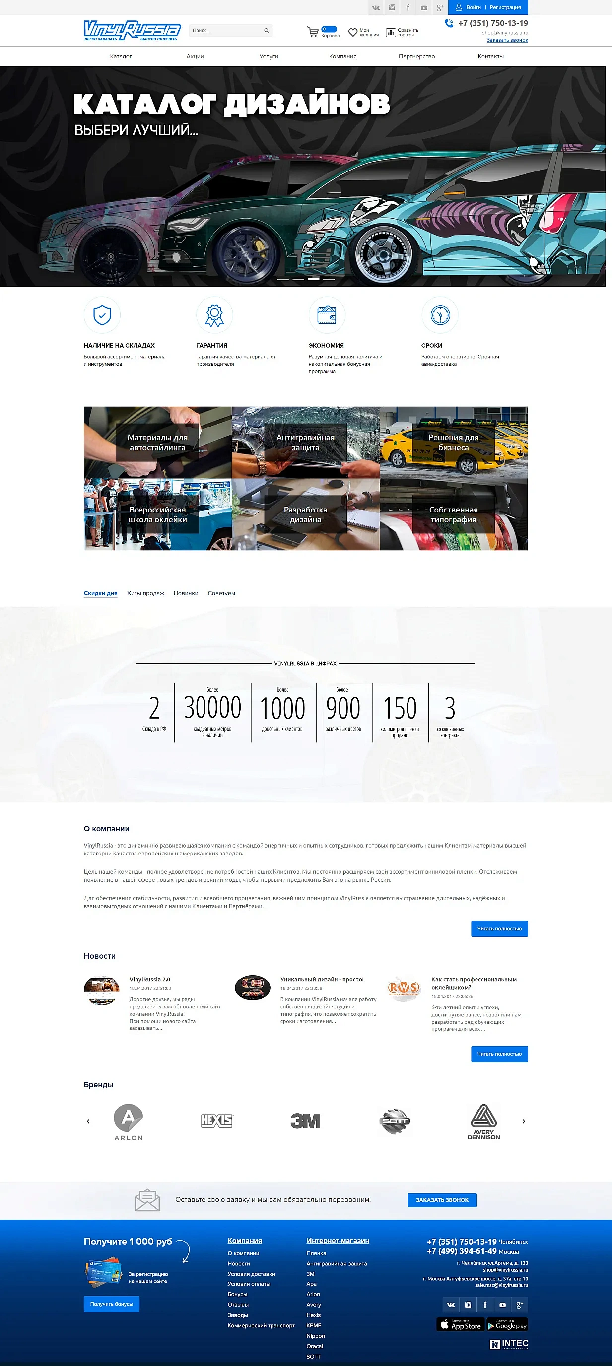 Разработка корпоративного сайта по продаже виниловых пленок для авто Vinylrussia