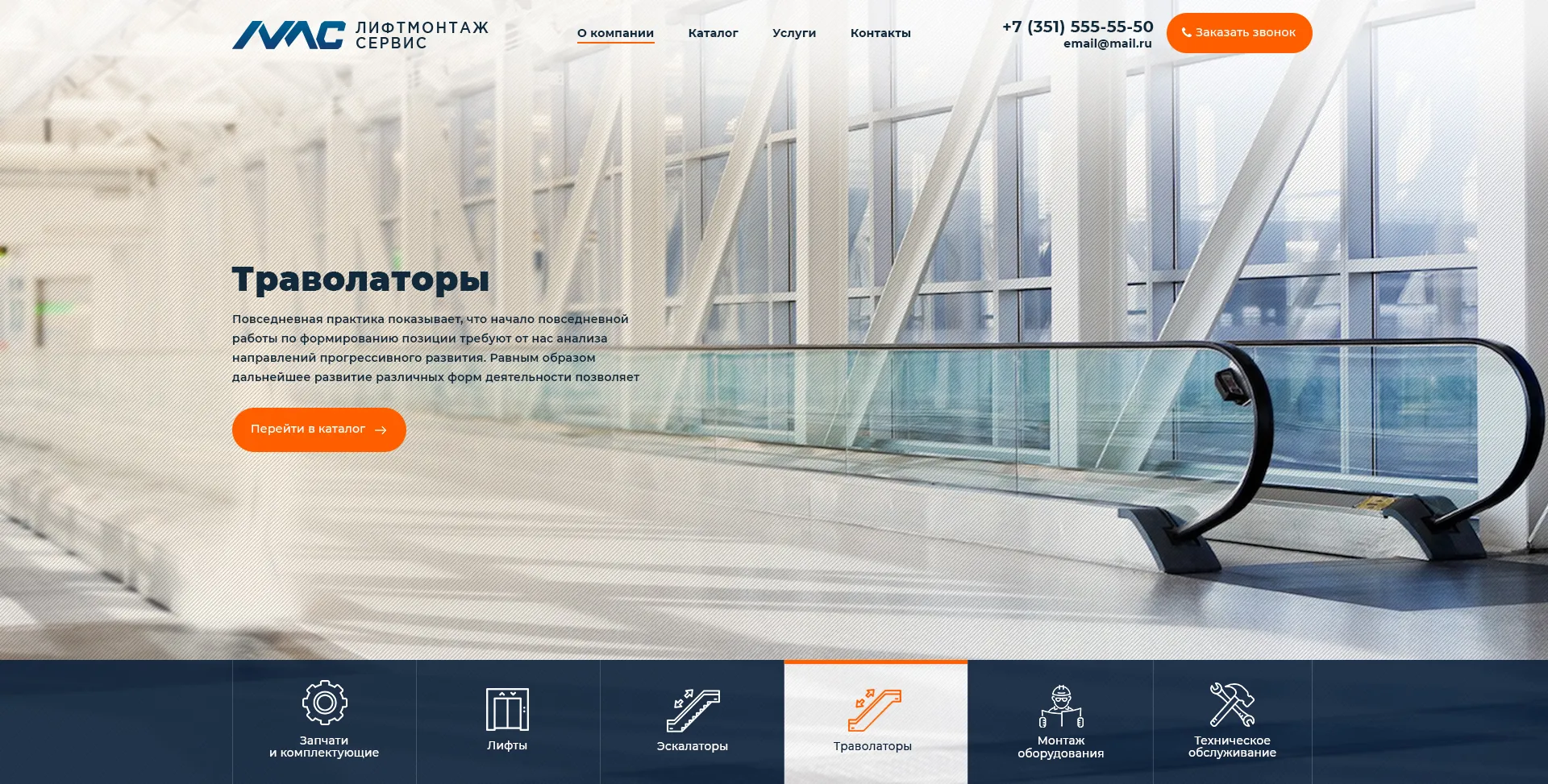 Главную страницу эксклюзивного сайта для поставщика запчастей лифтового оборудования было решено реализовать таким образом, чтобы она помещалась в один экран.