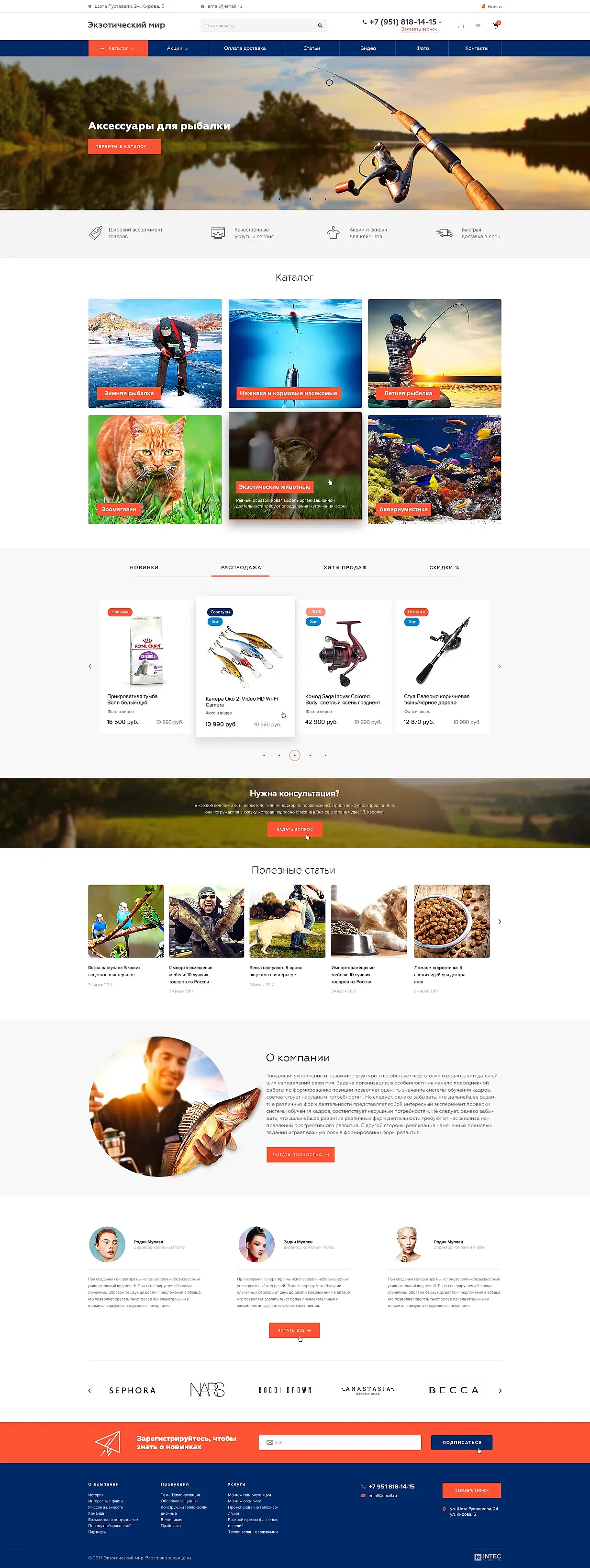 Сайт для компании "Экзотический мир" предполагает наличие интернет-магазина товаров для животных, а также редких представителей фауны.