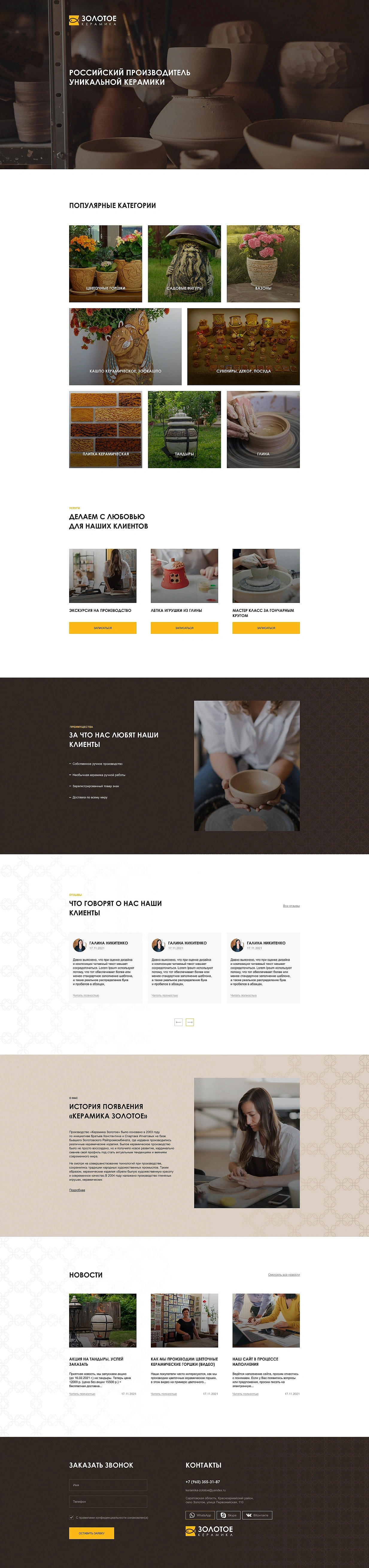Разработка интернет-магазина по производство керамических изделий «Керамика Золотое»