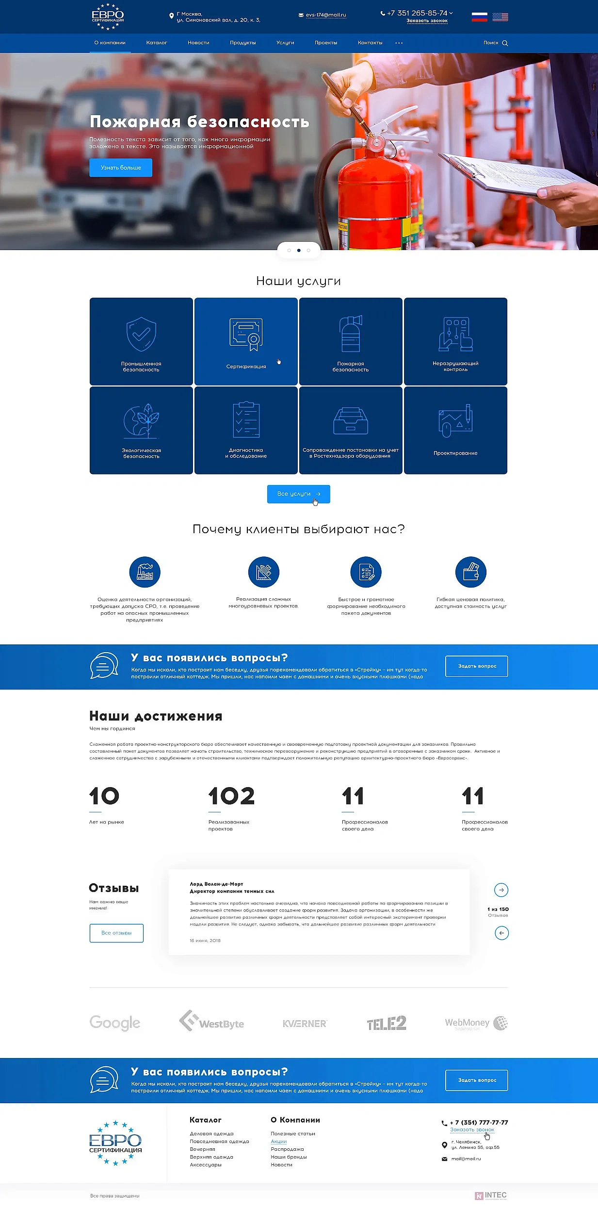 Корпоративный сайт с услугами для компании "Евросертификация" был разработан на решении INTEC.UniverseLite.