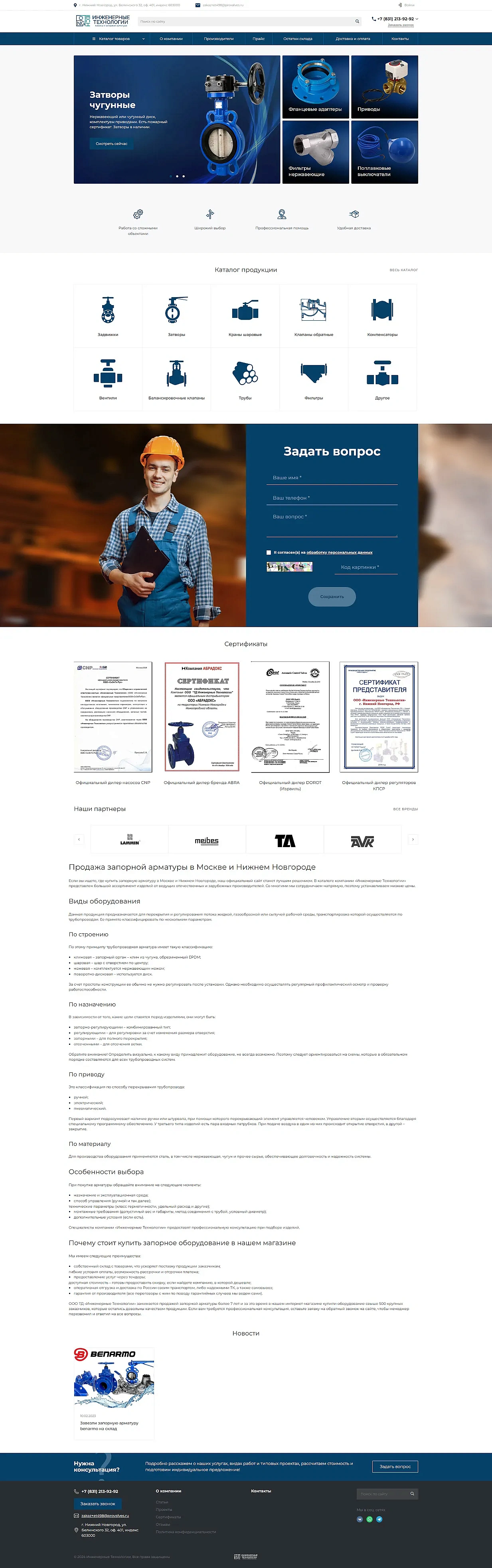 Разработка сайта для компании по продаже запорной арматуры и насосного оборудования ООО ТД «Инженерные Технологии»