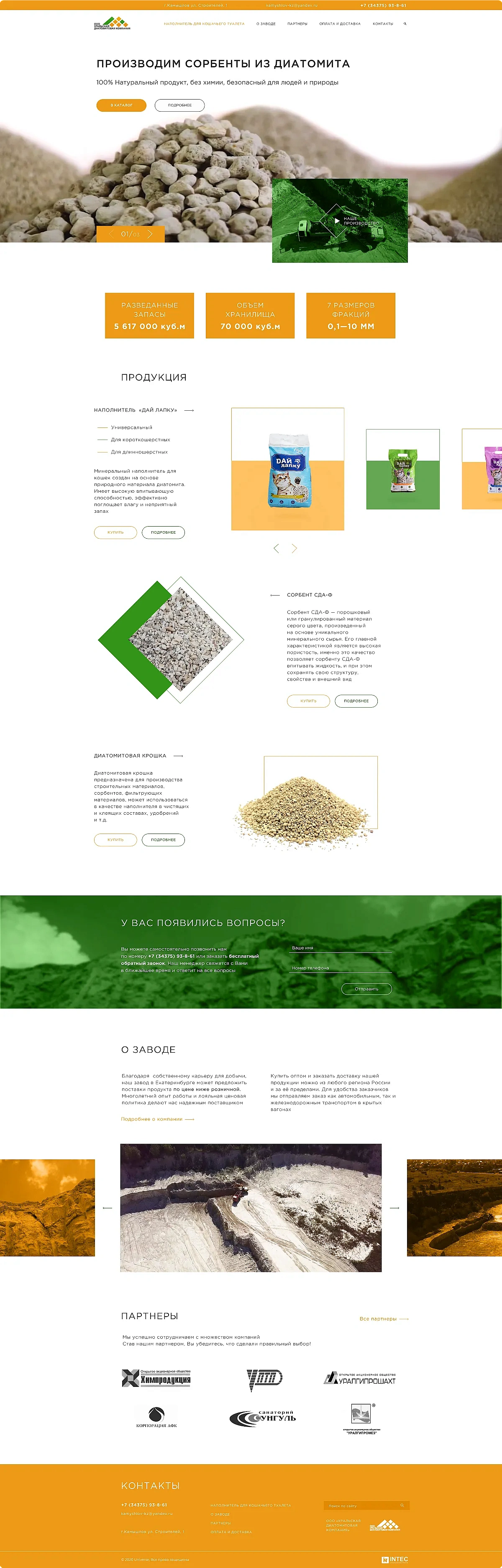 Мы занимаемся производством сорбентов из диатомитов. Итоговый продукт - минеральный наполнитель для кошек. Обратились к специалистам интернет-агентства INTEC, чтобы они создали сайт, который бы познакомил с нашей продукцией покупателей и оставил у них положительное впечатление. При создании сайта разработчики полностью ориентировались на наши пожелания. Через полтора месяца показали готовый сайт. У нас было несколько замечаний, которые устранили за два дня. Благодаря новому сайту, продажи выросли на 23 процента. Мы полностью довольны результатом сотрудничества.