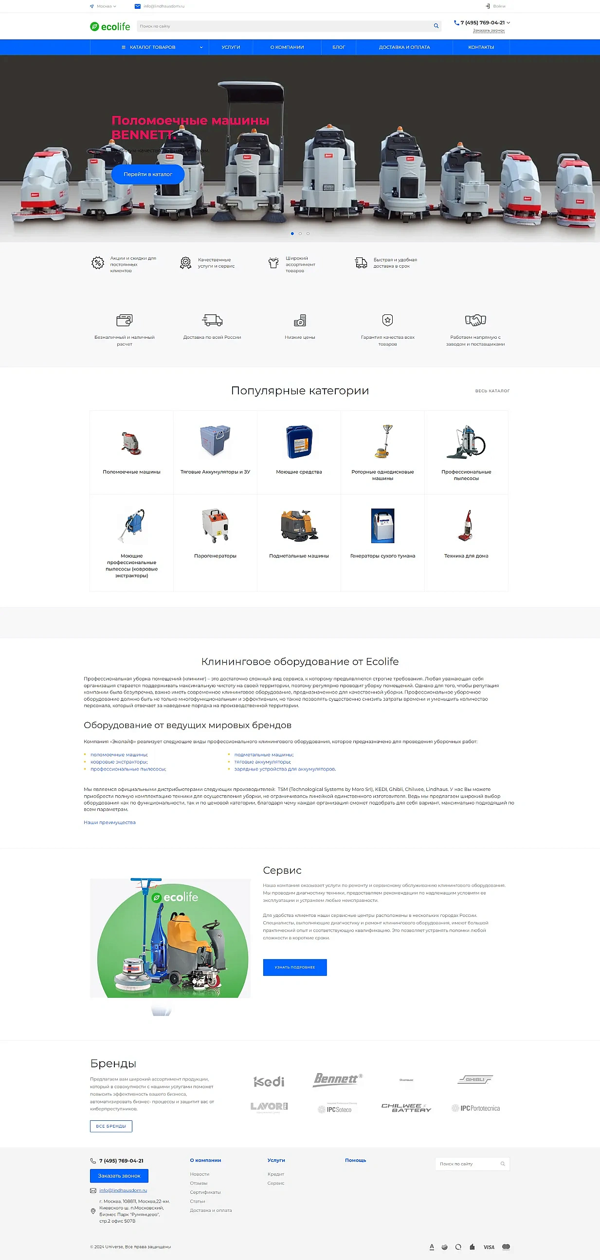 Разработка сайта для поставщика клинингового оборудования Ecolife