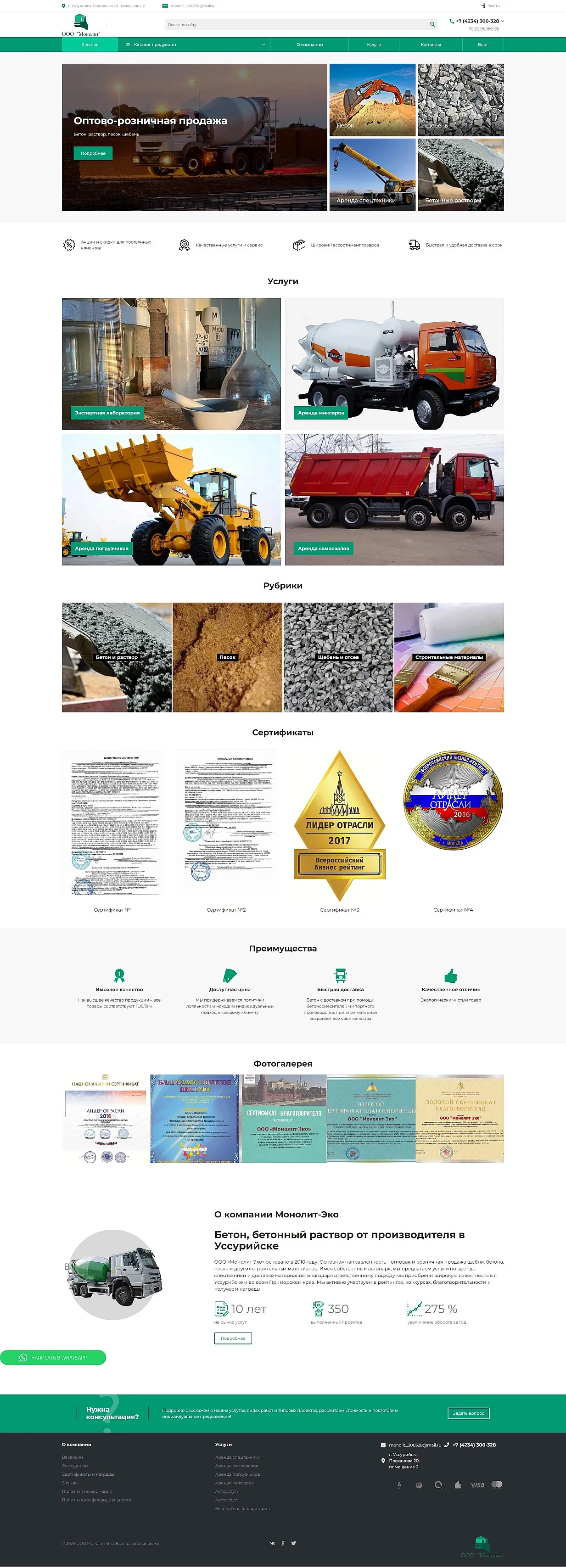 Разработка сайта для поставщика строительных материалов и щебня ООО «Монолит»