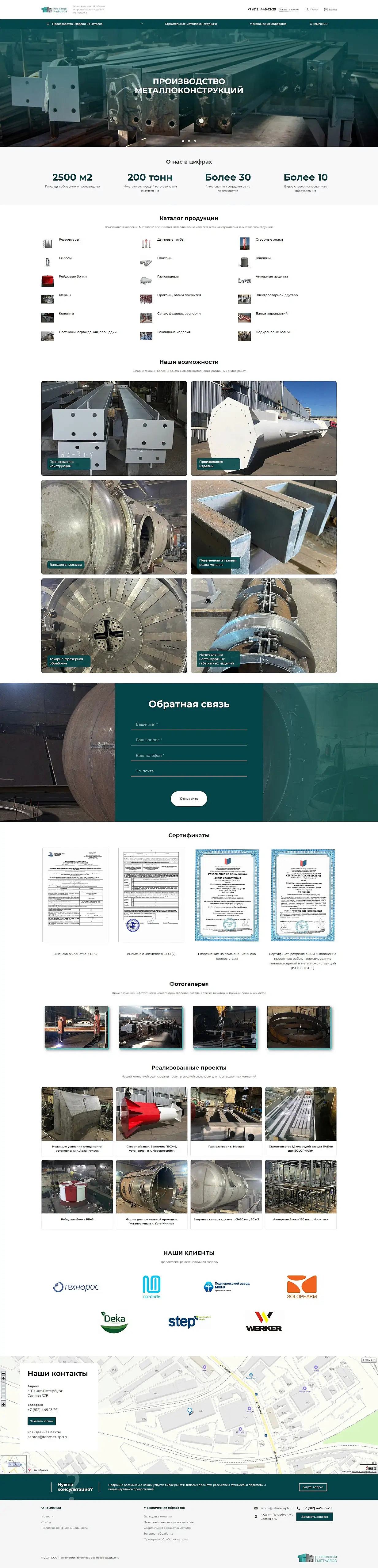Разработка сайта для производителя металлоизделий «‎Технология металлов»‎