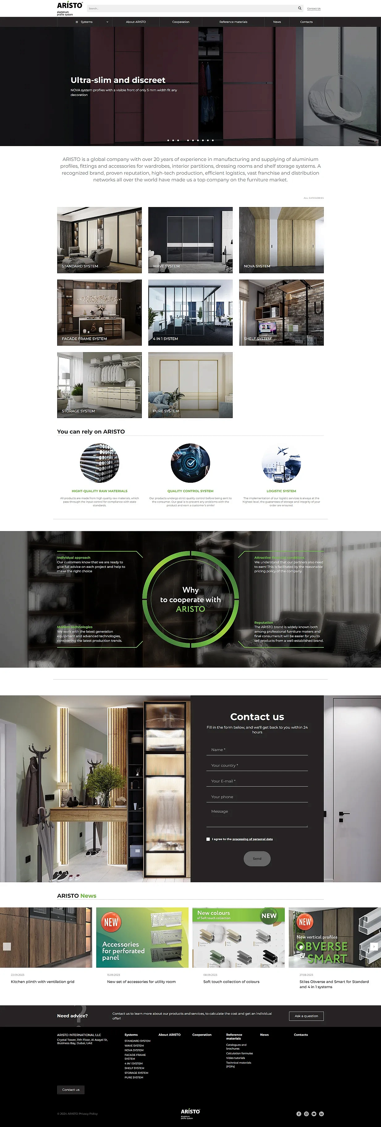 Разработка интернет-магазина алюминевых профильных систем ARISTO