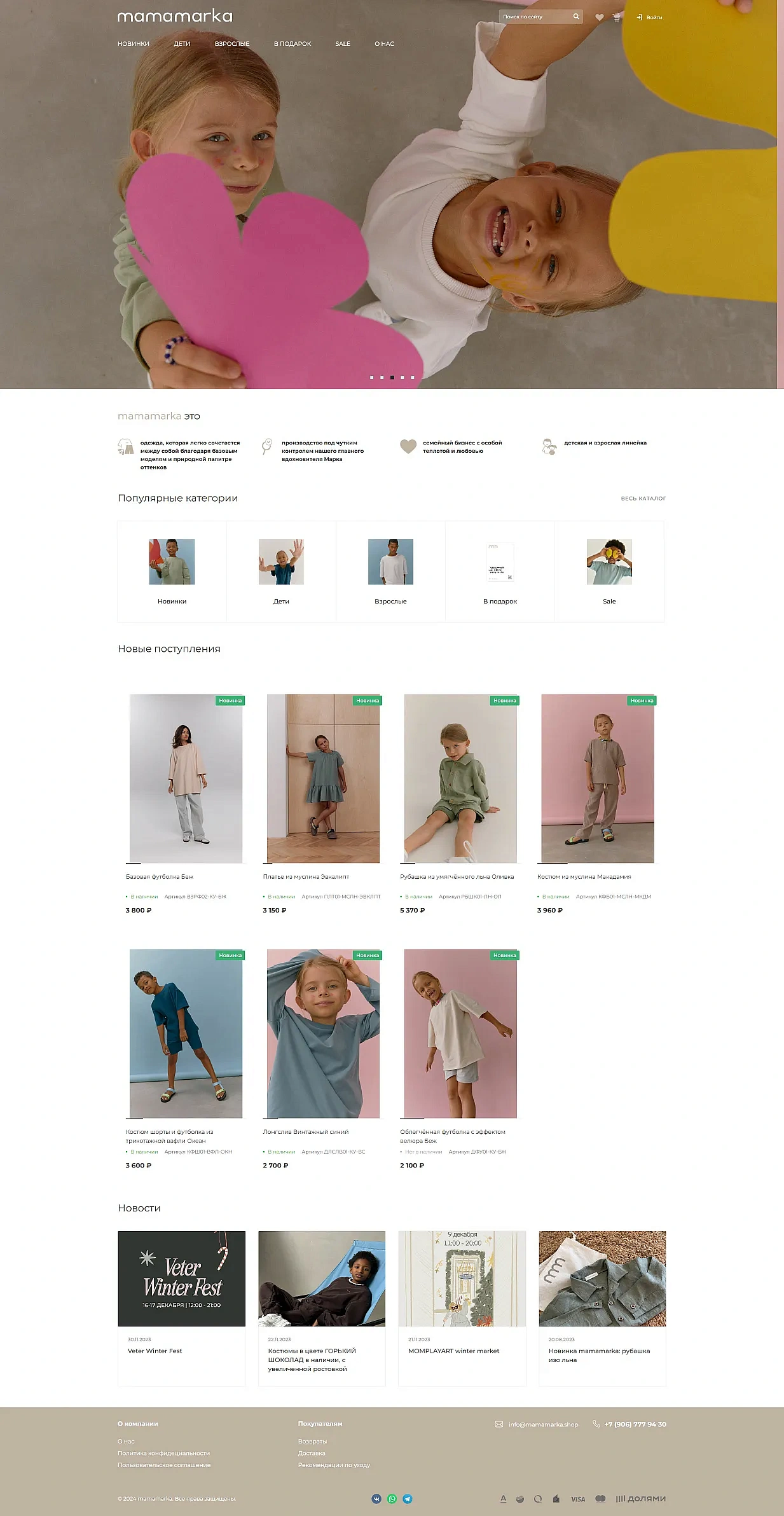 Разработка интернет-магазина дизайнерской детской одежды Mamamarka