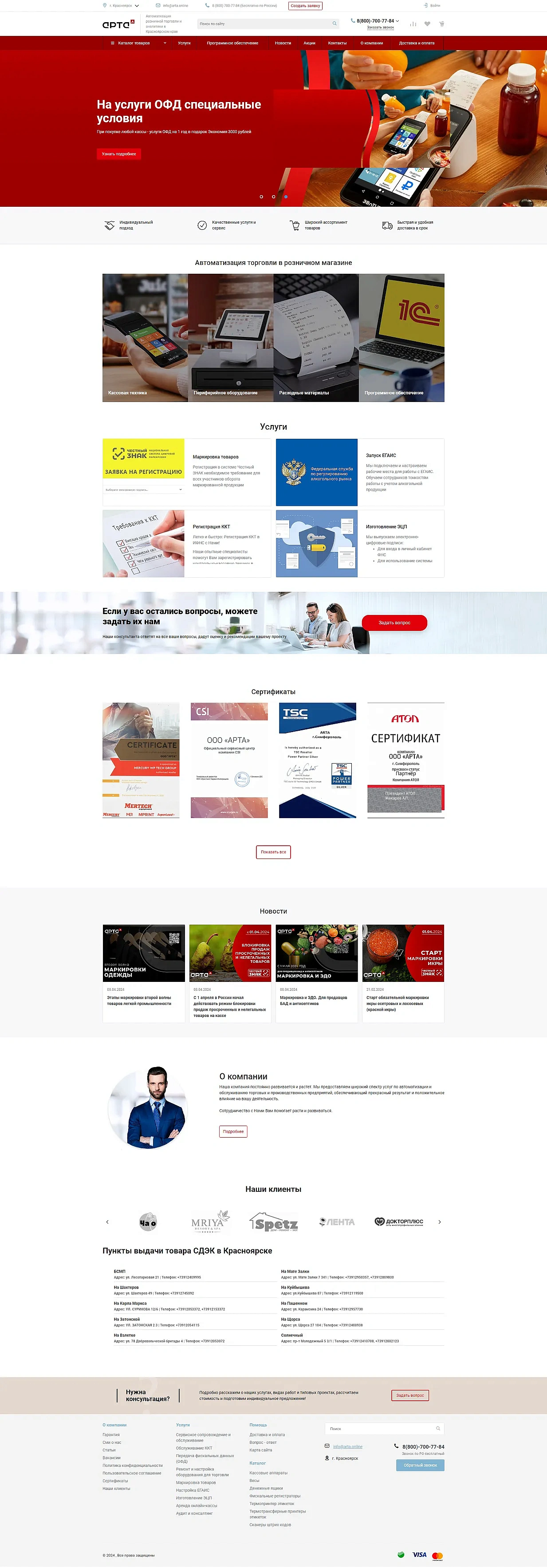 Разработка интернет-магазина оорудования для автоматизации торговли «АРТА»