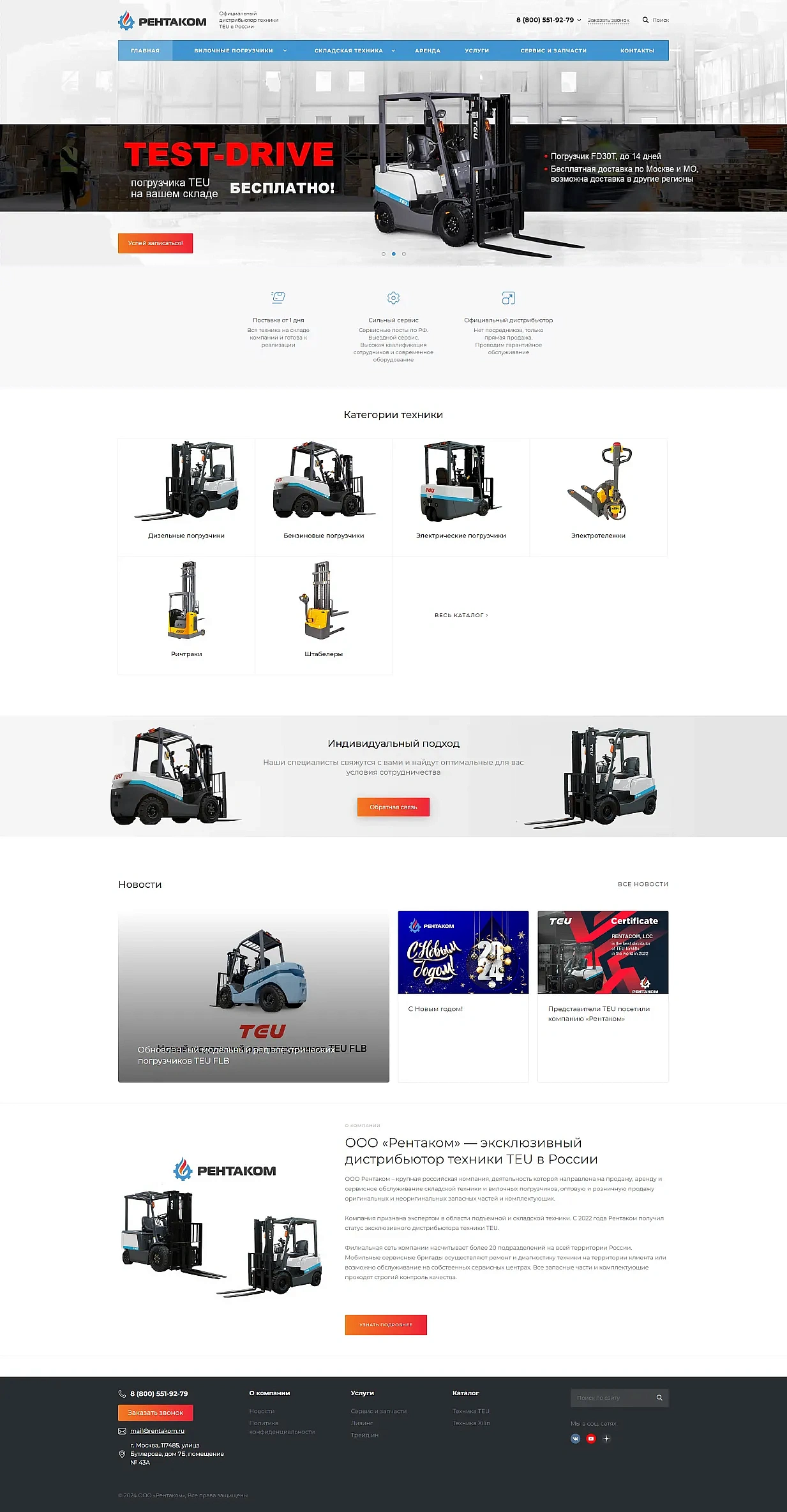 Разработка сайта для дистрибьютора подъемно-транспортного оборудования «Рентаком»
