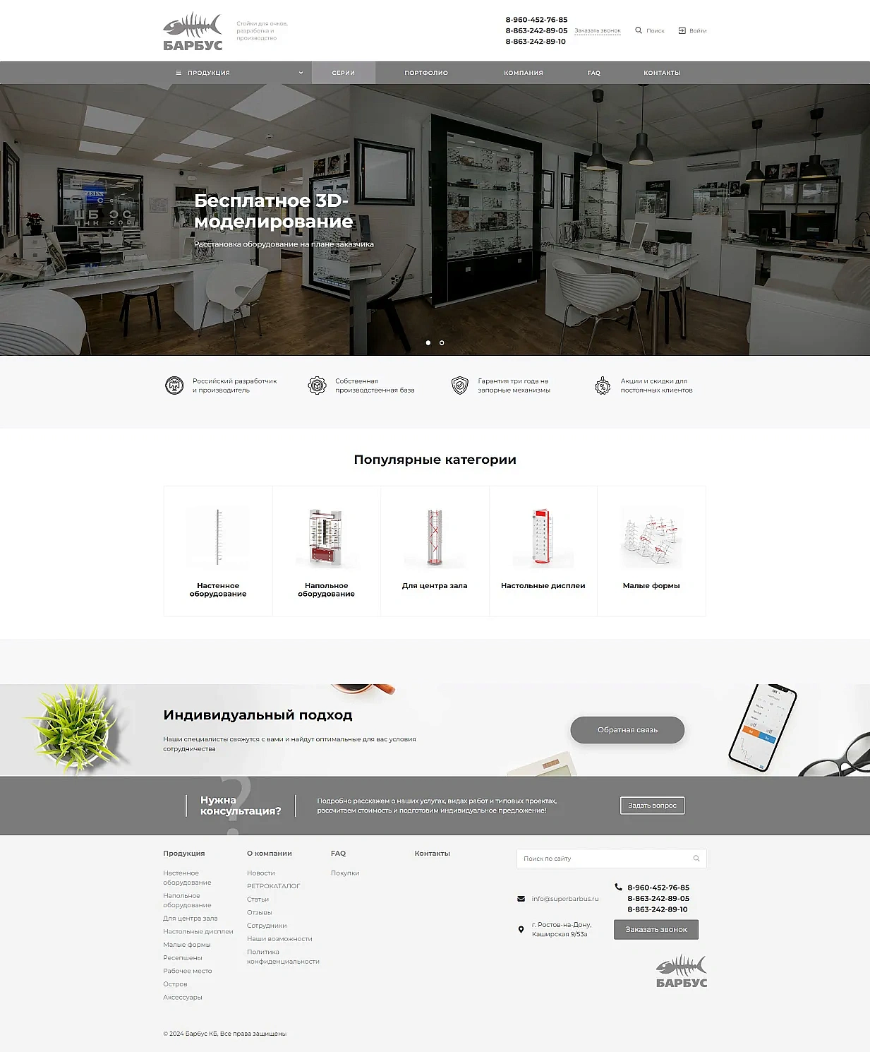 Разработка сайта для поставщика торгового оборудования «Барбус КБ»