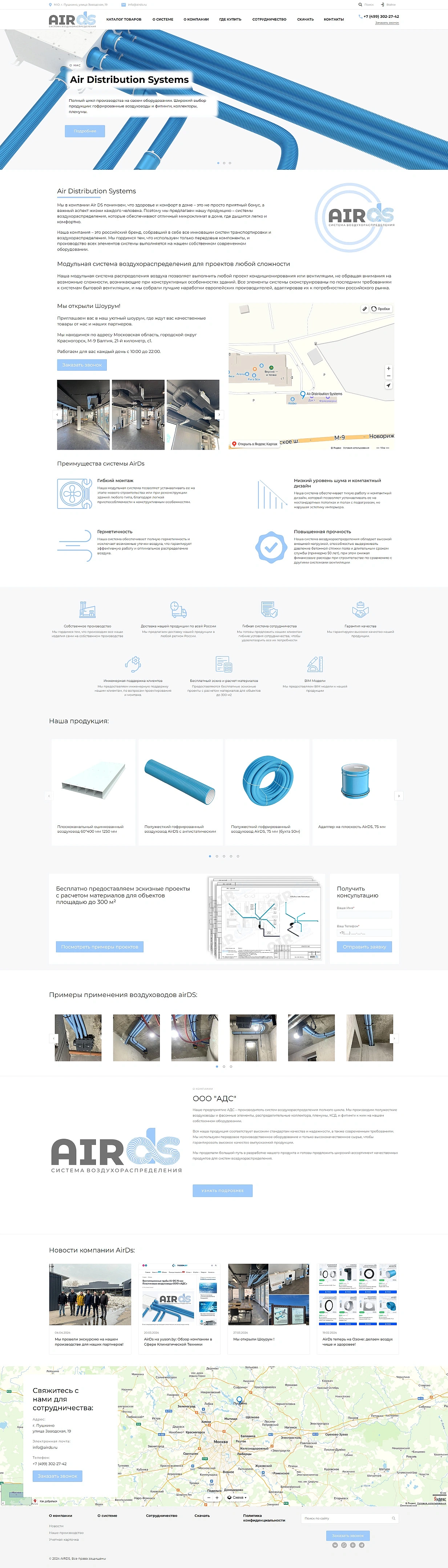 Разработка сайта для производителя систем воздухораспределения AIRDS