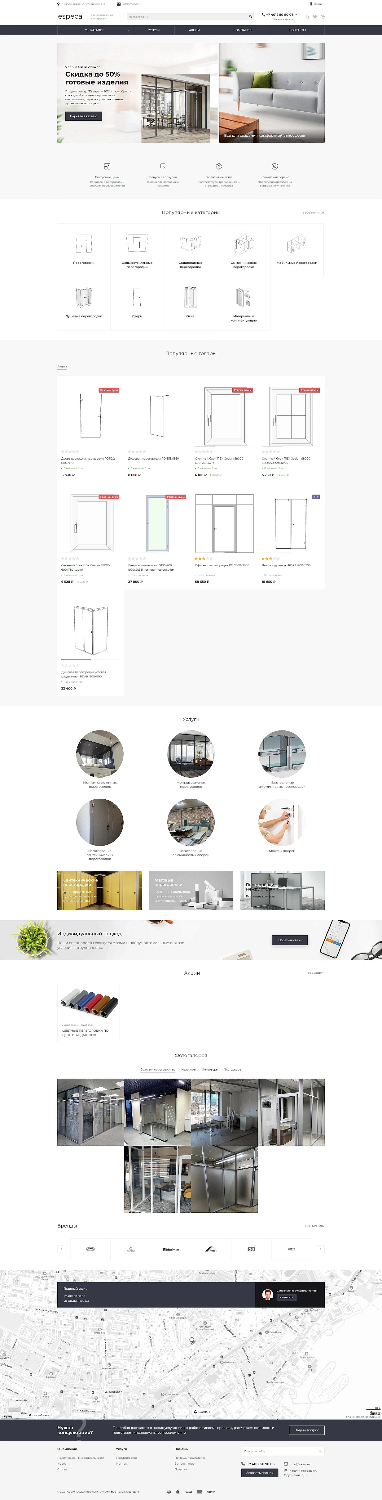 Разработка сайта для производителя светопрозрачных конструкций Especa