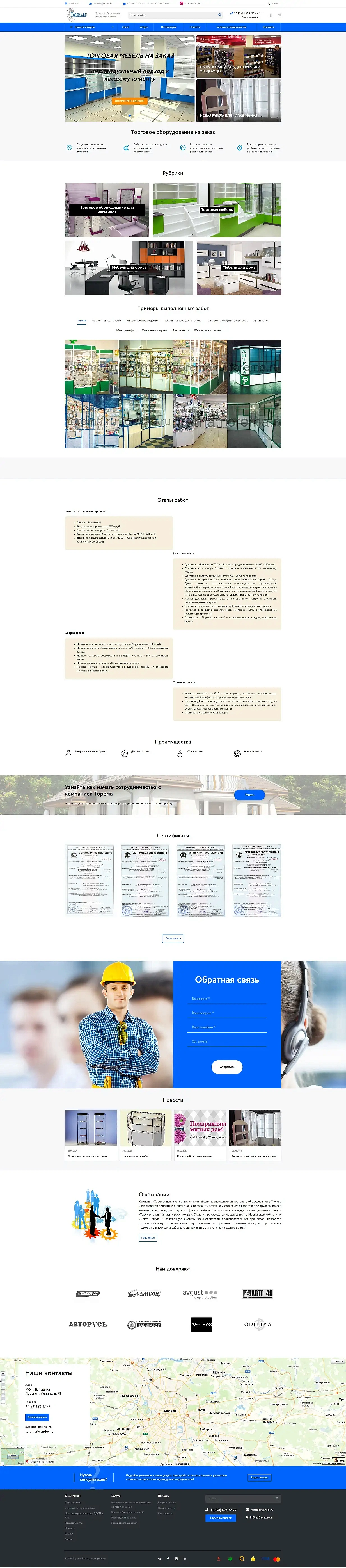 Разработка сайта для производителя торгового оборудования Torema.ru