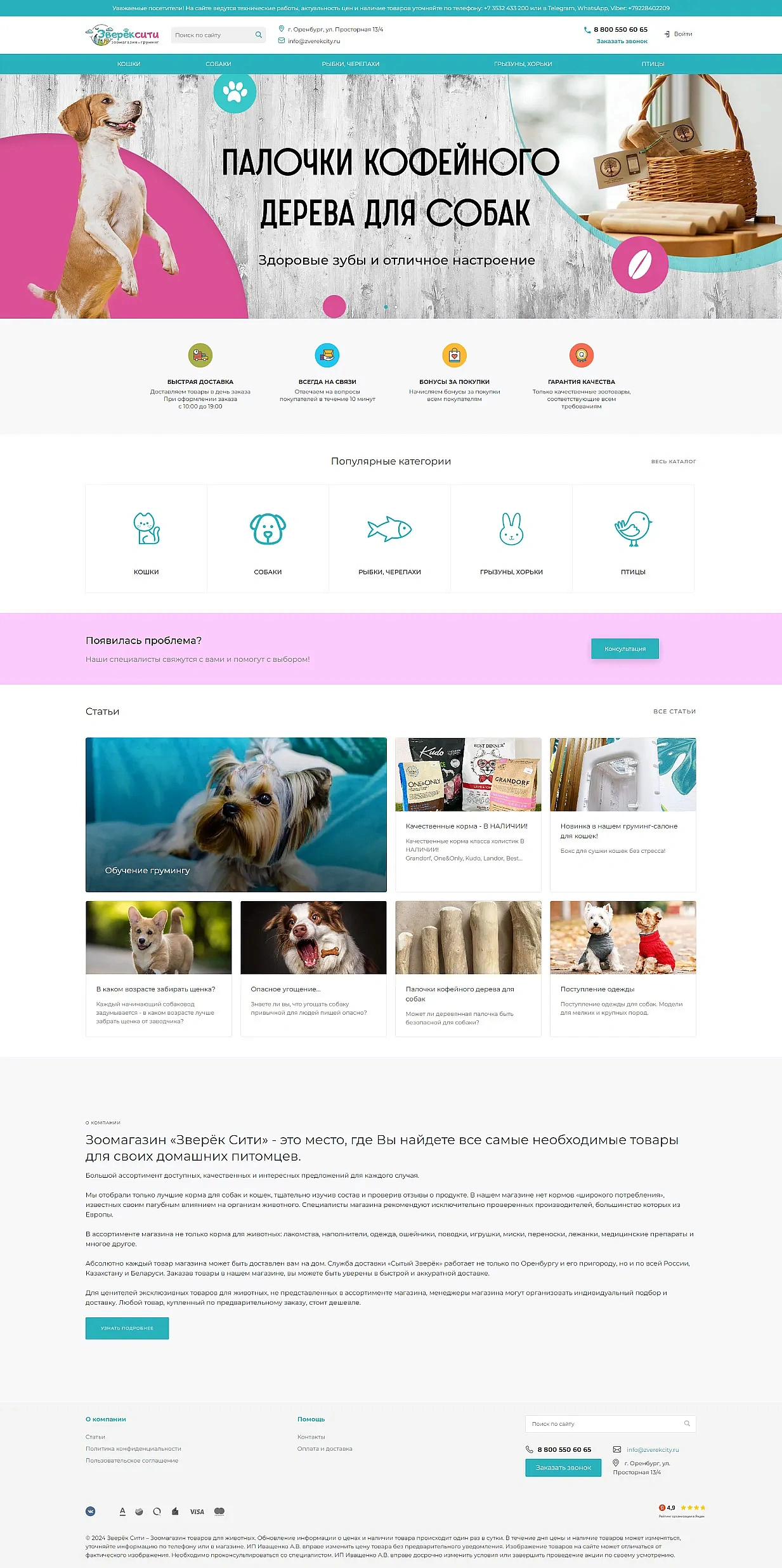 Разработка сайта для зоомагазина «Зверек Сити»