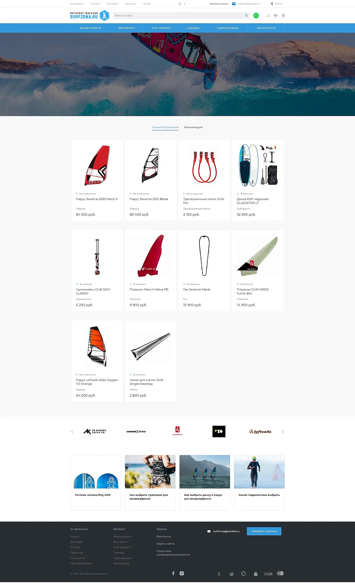 Разработка интернет-магазина оборудования для виндсерфинга Surfzona.ru