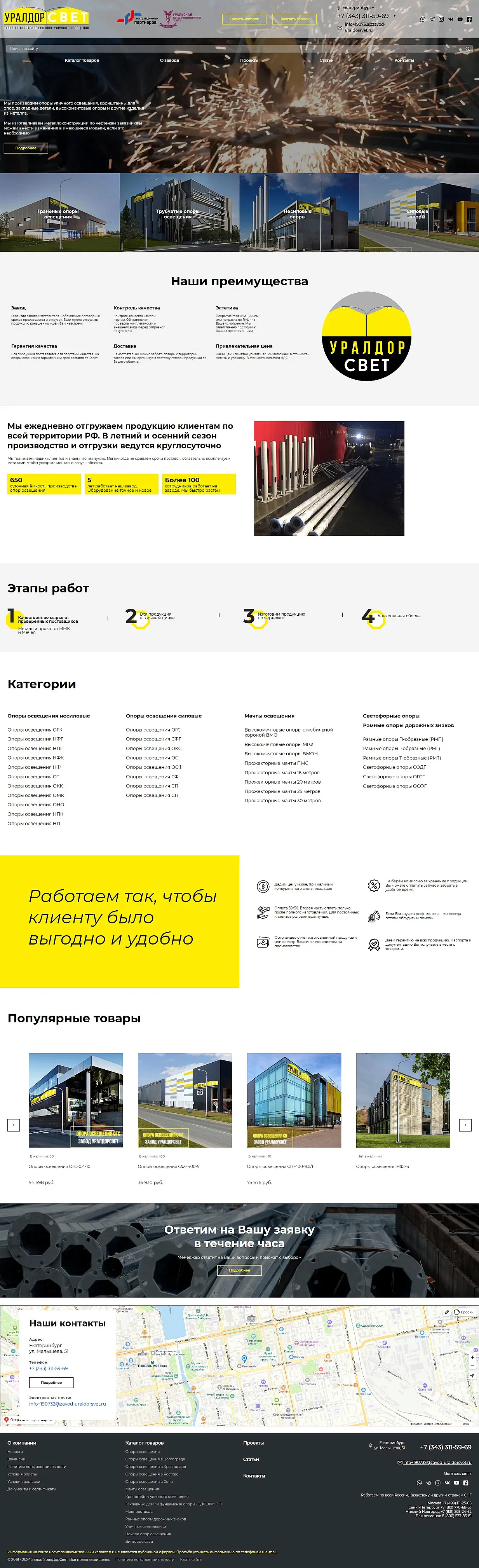 Разработка сайта для производителя опор уличного освещения «‎УралДорСвет»‎