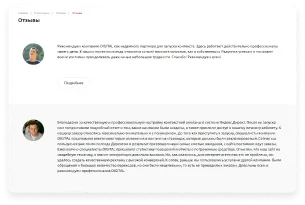 В каждой карточке предусмотрен отдельный блок с отзывом заказчика