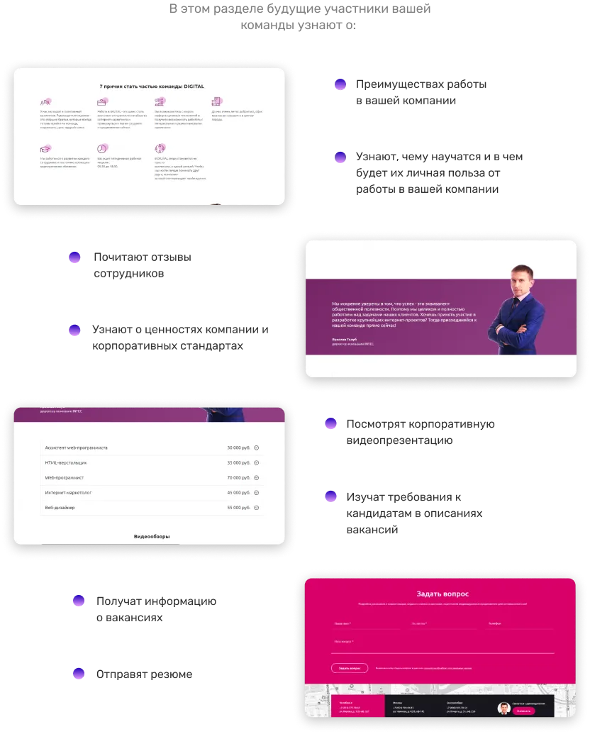 Ключевой задачей корпоративного сайта digital-компании является рекрутинг и привлечение в организацию новых сотрудников. Поэтому мы создали привлекательный раздел для соискателей.