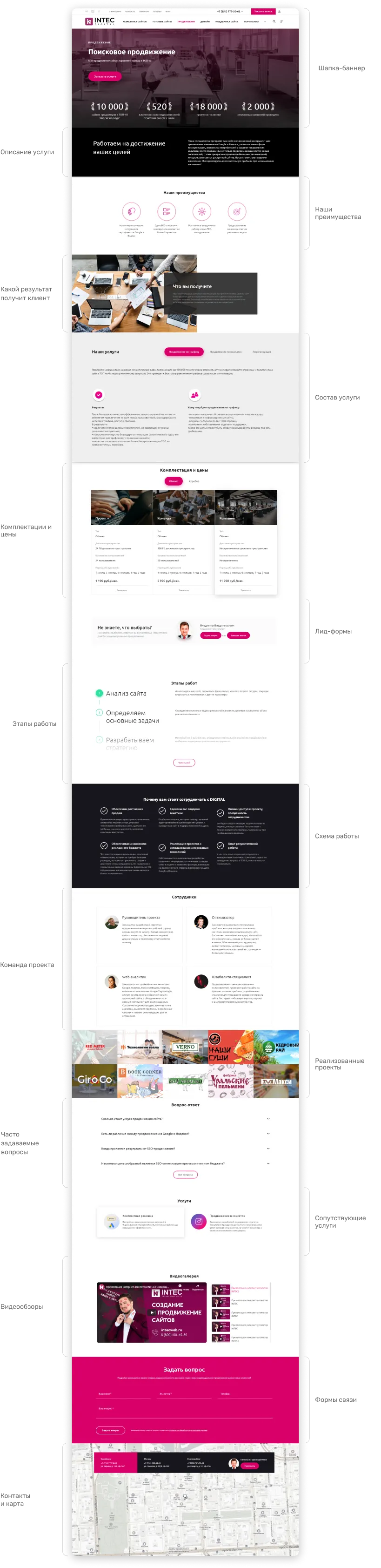 Каждую карточку услуг мы спроектировали под задачи максимальной лидогенерации. Разместили блоки для формирования доверия и потребности в заказе услуг: