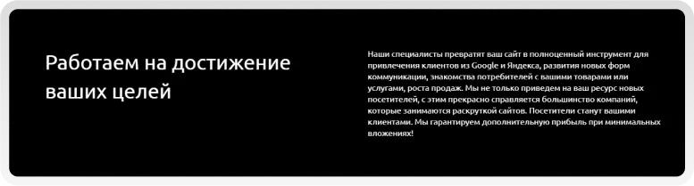 Для услуг мы подготовили авторский контент, созданный по методике маркетингового копирайтинга. Над каждым текстом трудился талантливый автор, оттачивая до идеала каждую фразу, выверяя каждый абзац и строку.