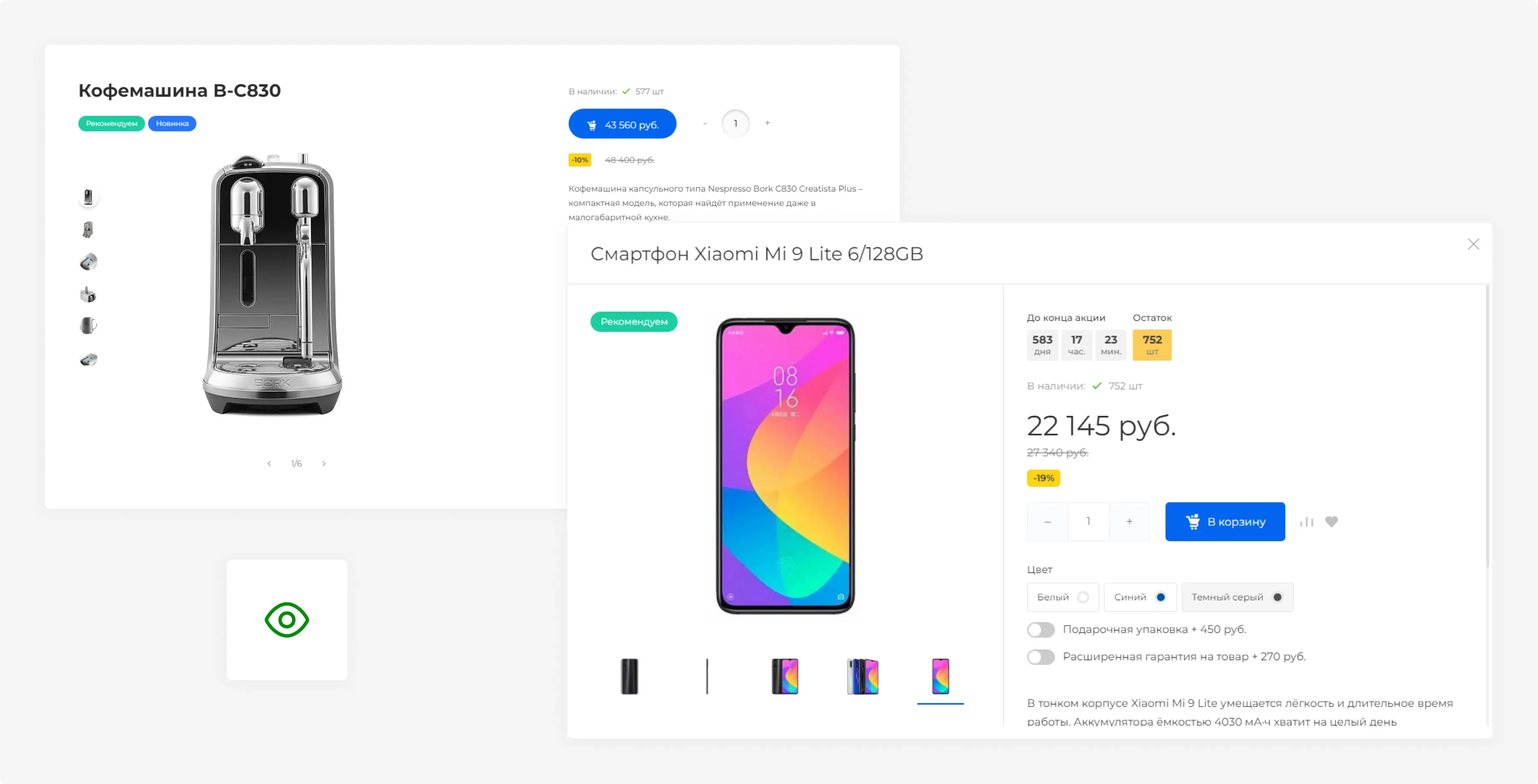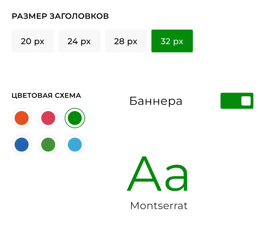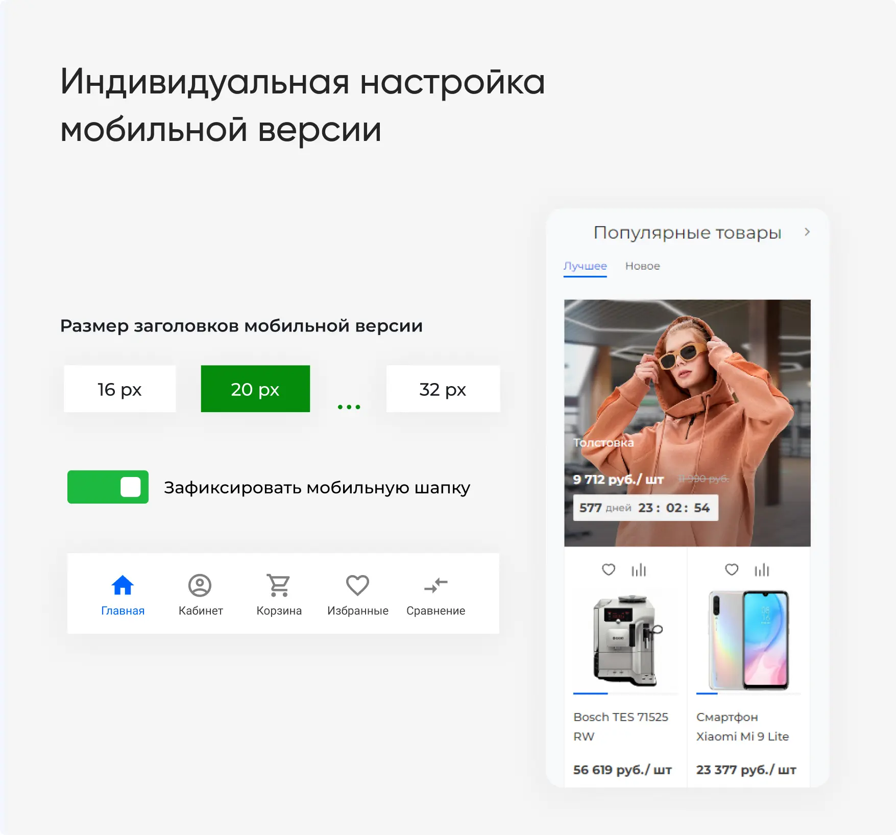 Опция полноценной настройки цветовой схемы позволяет Старт SHOP органично вписываться в любой дизайн сайта.