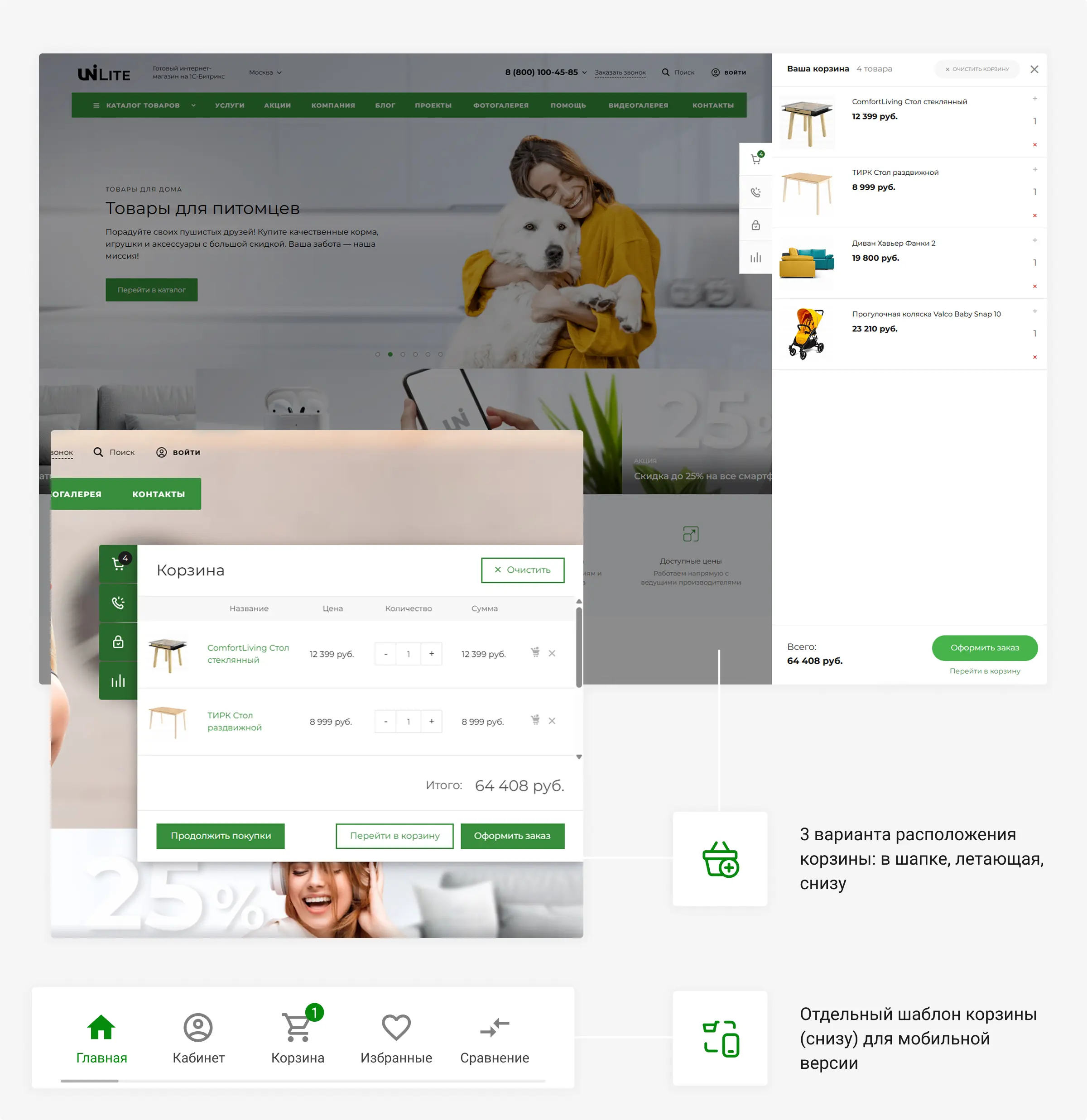 Модуль Старт SHOP позволяет организовать каталог товаров, настроить корзину, подключить системы оплаты и доставки, а также интегрировать сайт с «1С».
